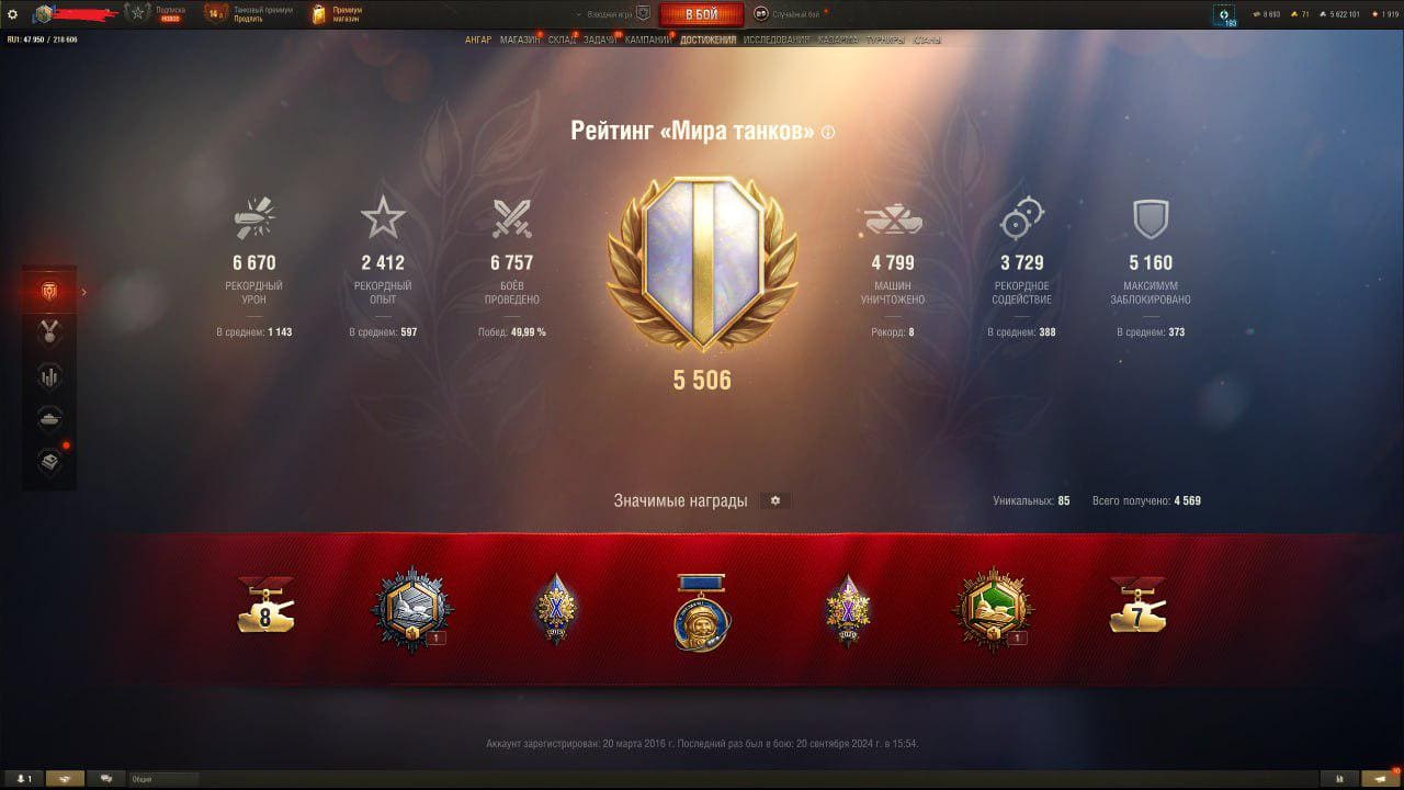 🏆Процент побед: 49% 🎌Число боёв: 6 757 💰Серебро: 5 622 101